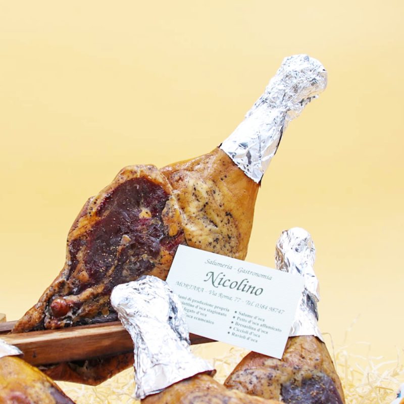 Ottenuto dalla lavorazione di cosce d’oca attentamente selezionate.